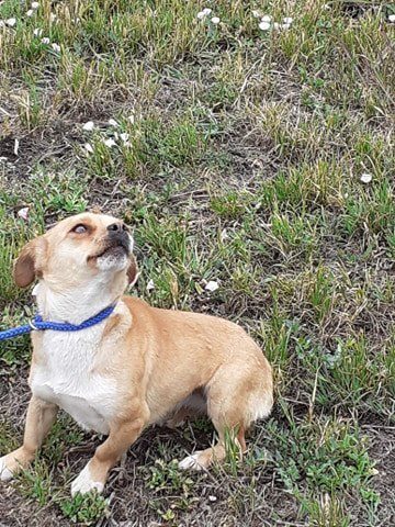Det er helt klart at Ellie har hatt en eier. Hun ble forlatt, uvisst av hvilken grunn. For en tid tilbake ble hun slått eller truffet av noe, dette vet vi fordi hun har ett gammelt, ubehandlet benbrudd. Det er dessverre slik det ofte er: mange av gatehundene vi tar inn, har gamle og ubehandle brudd i kroppen. Brudd som har grodd uten behandling, og som derfor ofte gror sammen feil, og forårsaker ytterlige plager, smerter og endring i ganglag.