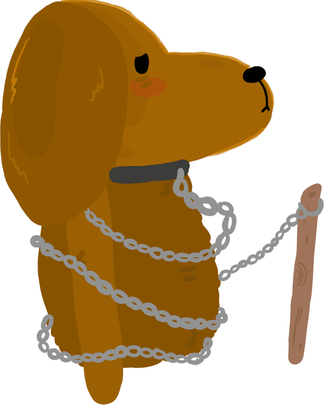 Men ettersom jeg vokste til, og ble større, så satte dere meg i en kjetting, foran huset. Og dere glemte at jeg eksisterte… Jeg forble alene i min lille verden, i mitt lille, improviserte hundehus. Og årene gikk…