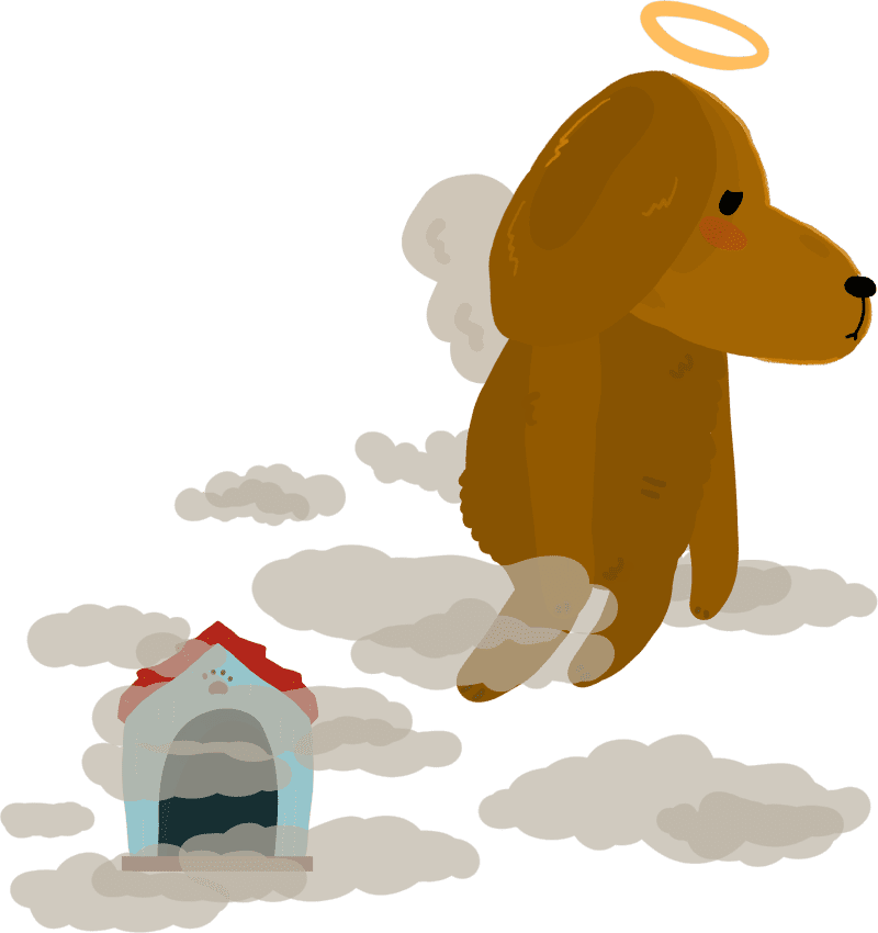 Dette var dagen jeg krysset Regnbuebroen, fikk mine vinger, og fløy avgårde til hundehimmelen, hvor våre drømmer går i oppfyllelse og jeg har det bra.